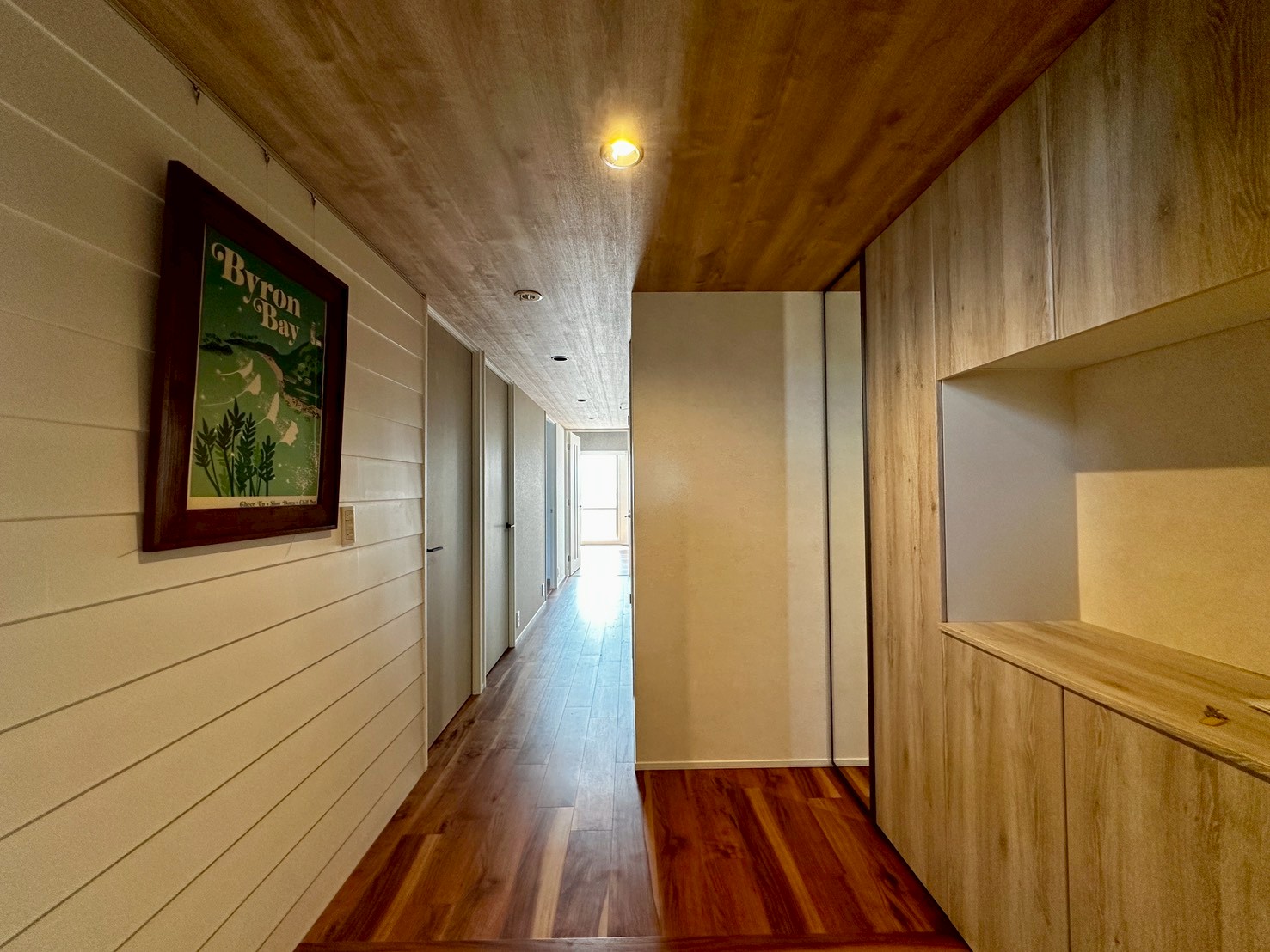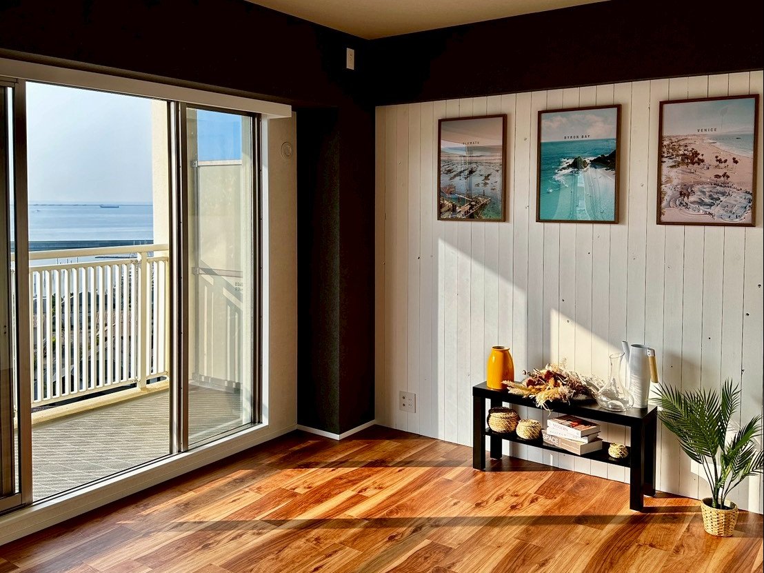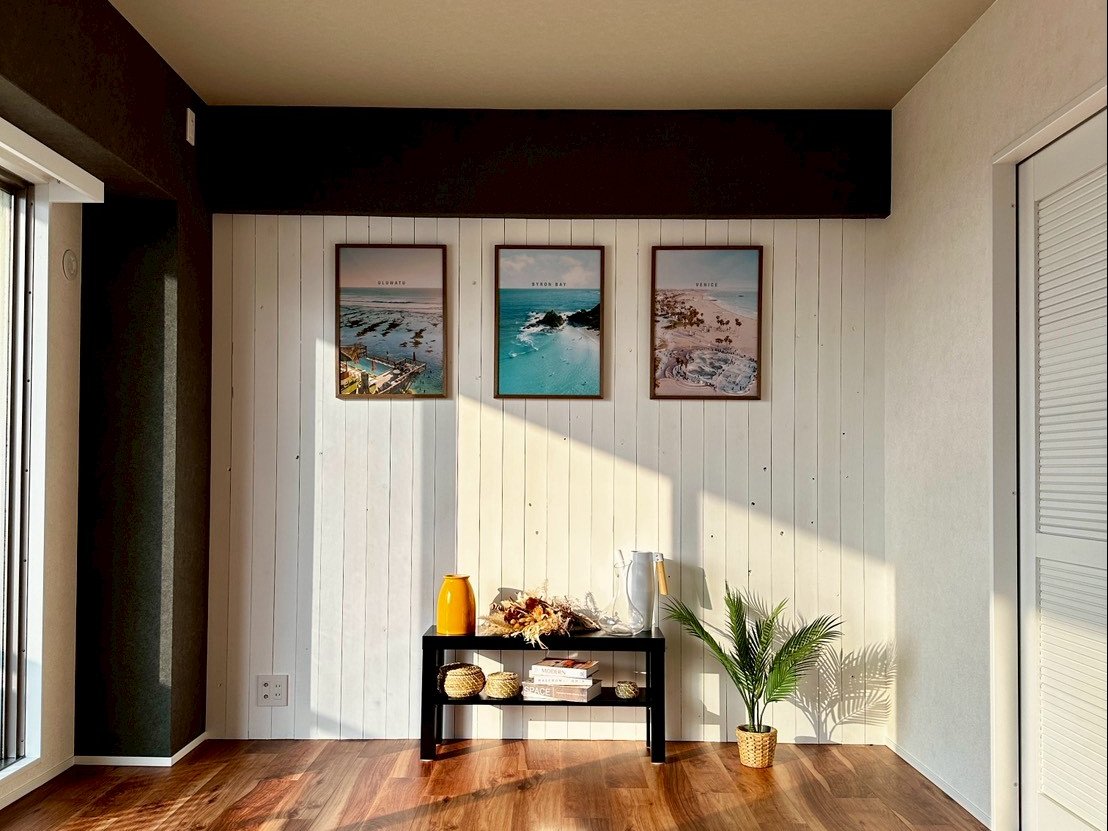 天井やアクセントのクロスで、海のほとりを感じさせる住まいになりました。