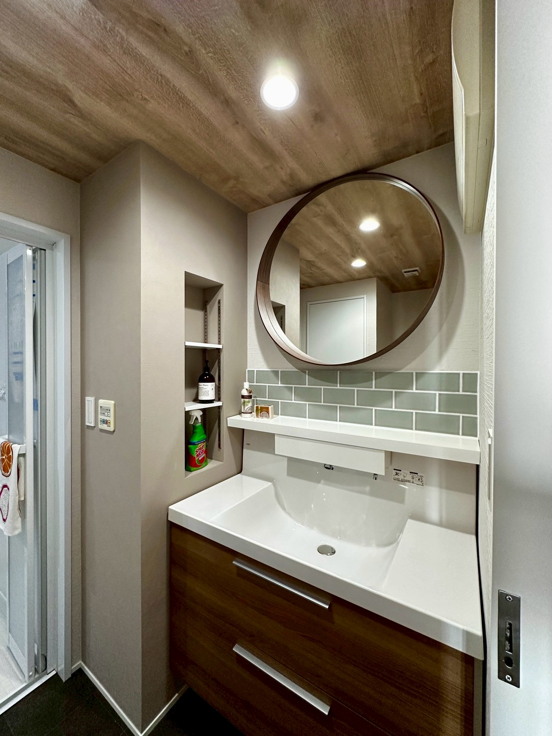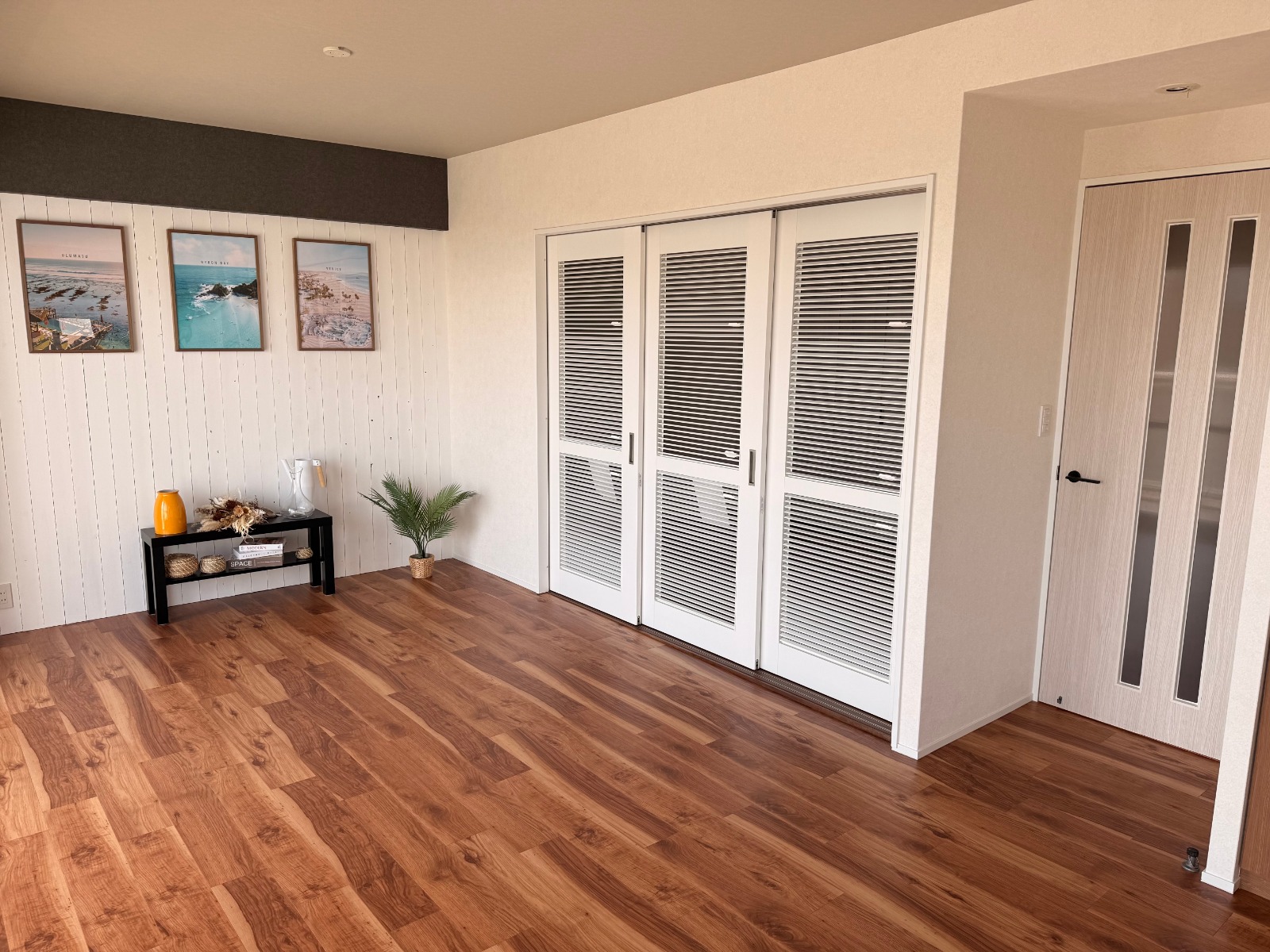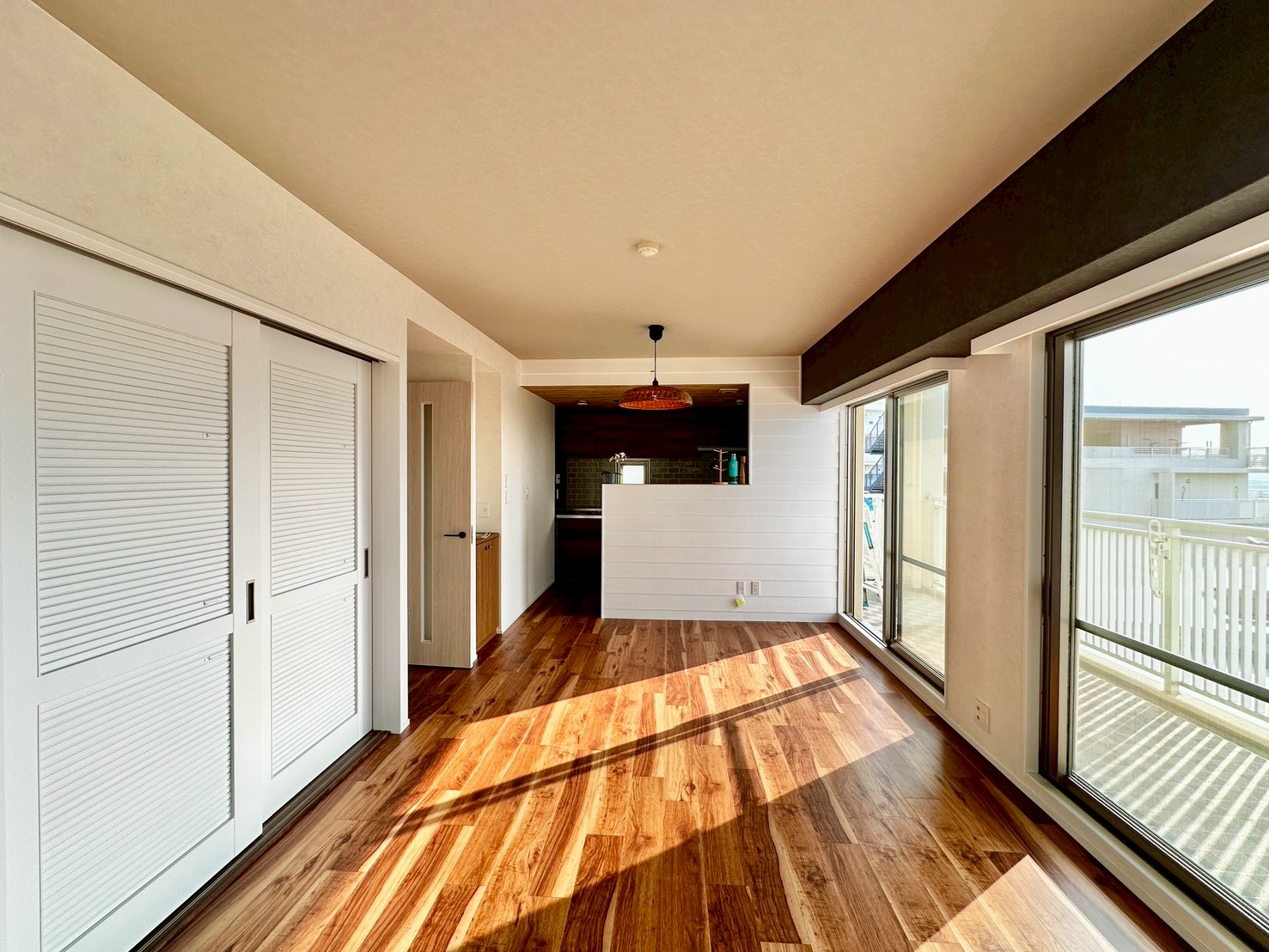 天井やアクセントのクロスで、海のほとりを感じさせる住まいになりました。